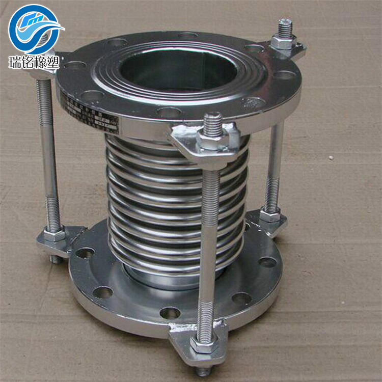 不锈钢波纹补偿器 也称伸缩节,或不锈钢波纹管补偿器,是用以利用 不锈钢波纹管 补偿器、膨胀节的弹性元件波纹管的有效伸缩变形来吸收管线、导管或容器由热胀冷缩等原因而产生的尺寸变化的一种补偿装置,属于一种补偿元件。可对轴向,横向,和角向位移的的吸收,用于在管道、设备及系统的加热位移、机械位移吸收振动、降低噪音等。不锈钢波纹补偿器为补偿因温度差与机械振动引起的附加应力,而设置在容器壳体或管道上的一种挠性结构。由于它作为一种能自由伸缩的弹性补偿元件,工作可靠、性能良好、结构紧凑等优点,已广泛应用在化工、冶金、核能等部门。在容器上采用的波纹补偿器有多种形式,就波的形状而言,以U形膨胀节应用得最为广泛,其次还有Ω形和C形等。而在管道上采用的波纹补偿器就结构补偿而言,又有万能式、压力平衡式、铰链式以及万向接头式等。